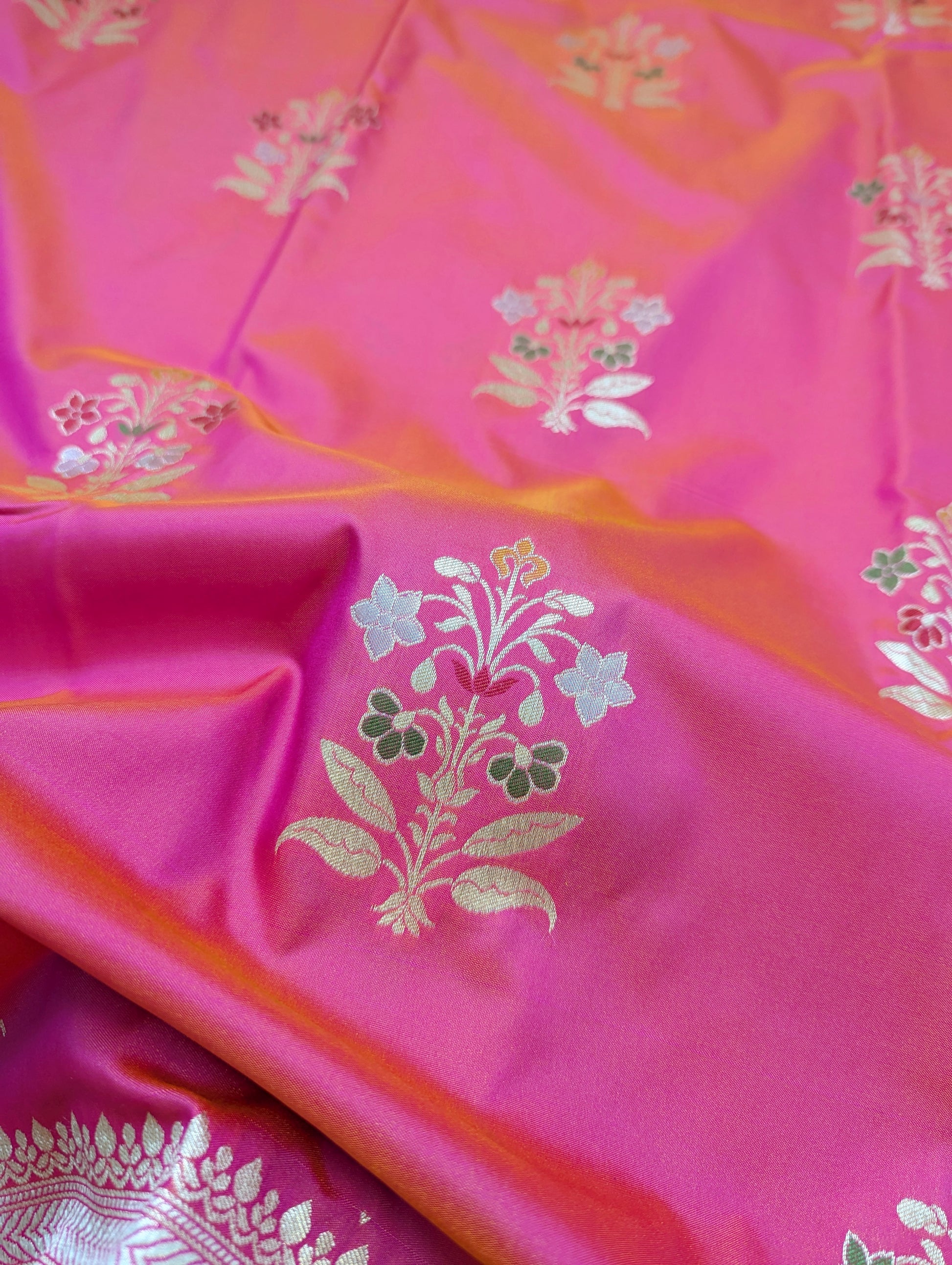 Banarasi Petals brings you an elegant Semi Katan range that captures the beauty of Banarasi katan silk in a more affordable form.