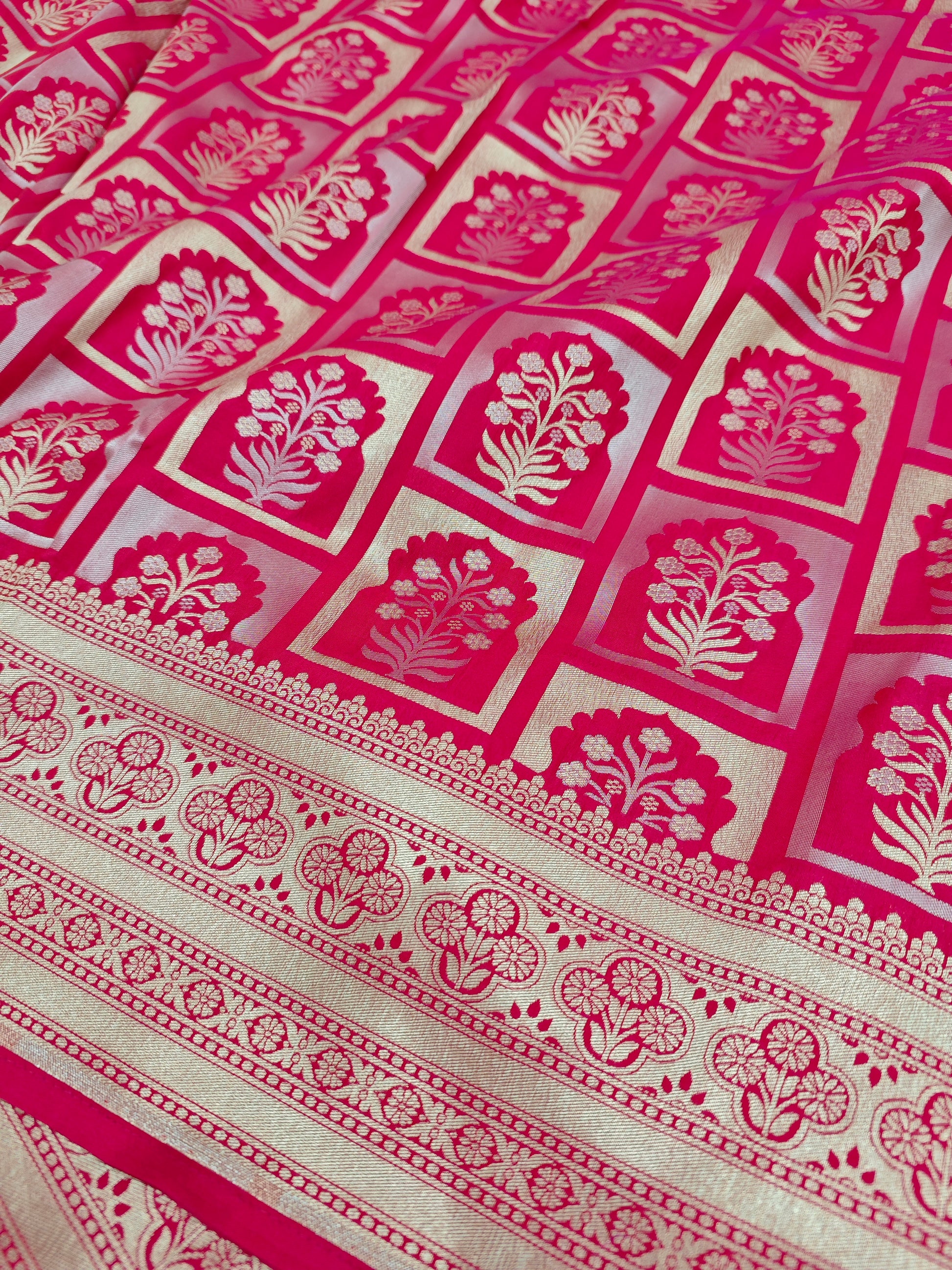Banarasi Petals brings you an elegant Semi Katan range that captures the beauty of Banarasi katan silk in a more affordable form.