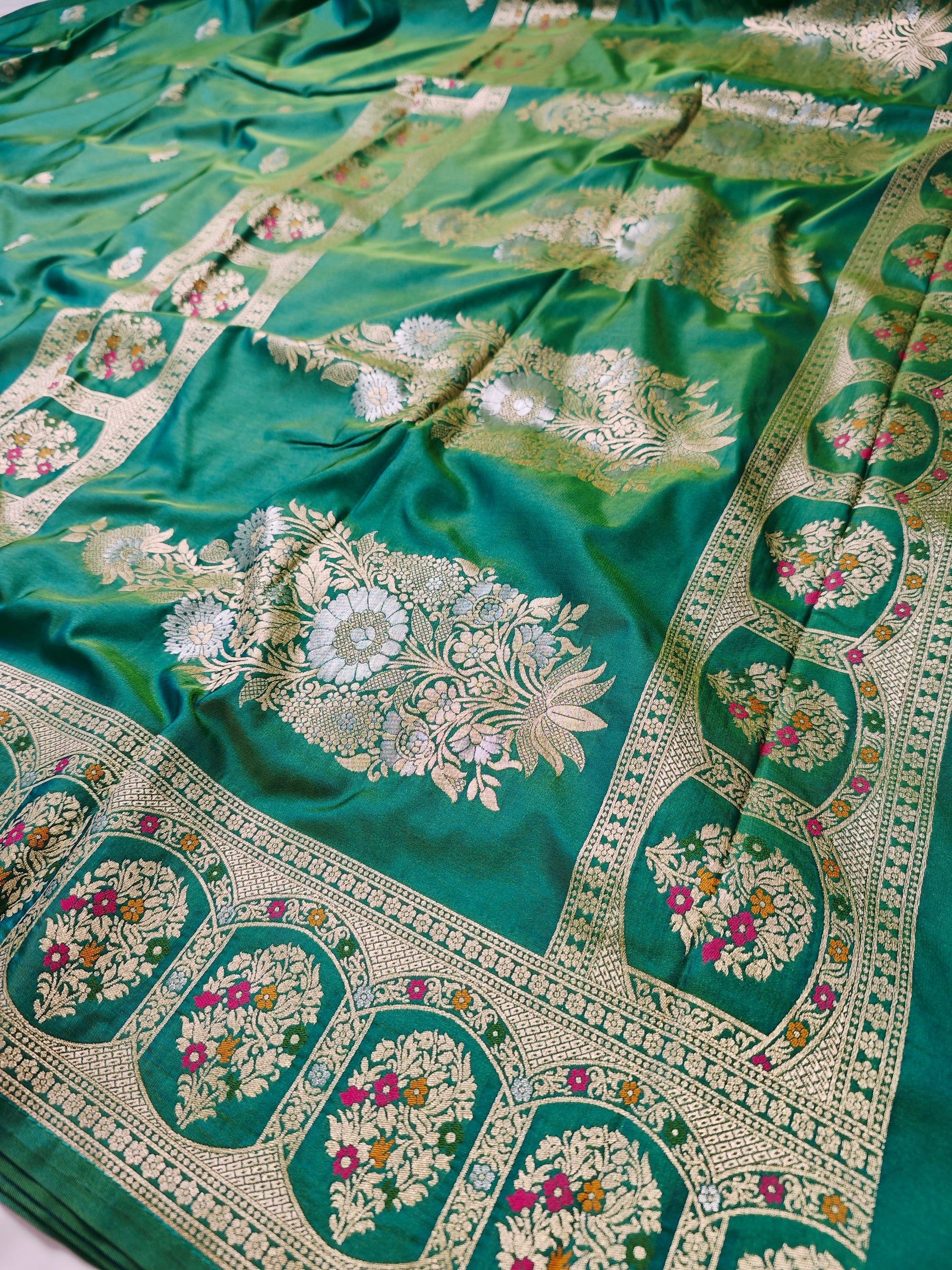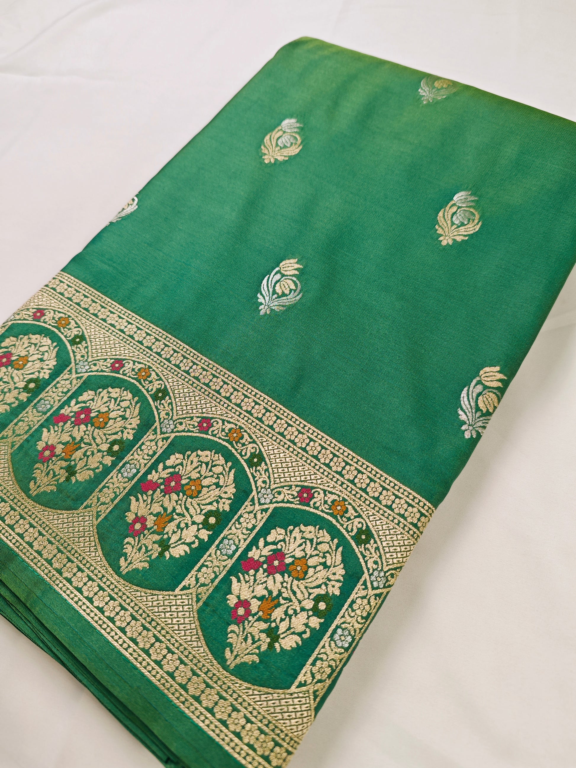 Banarasi Petals brings you an elegant Semi Katan range that captures the beauty of Banarasi katan silk in a more affordable form.